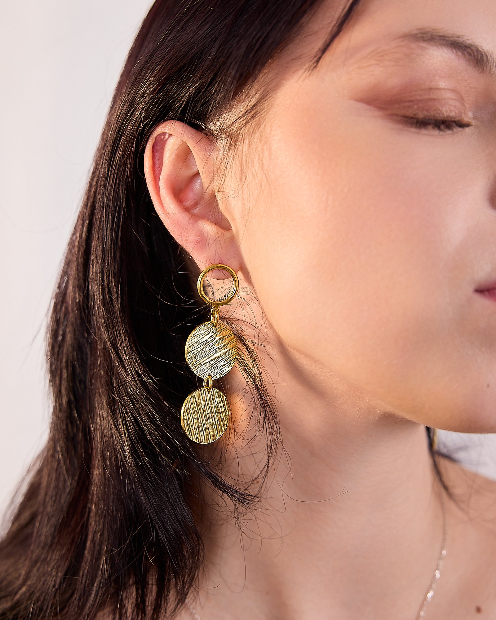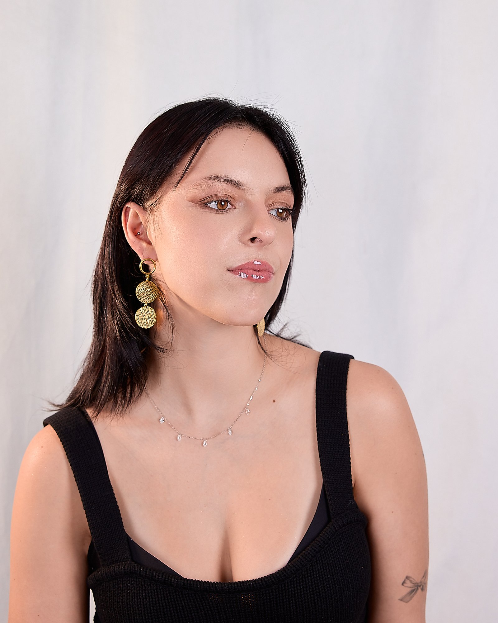 Ces boucles d’oreilles lui rendent hommage. Façonnées à la main par des artisans au Sénégal, en bronze plaqué or, elles dégagent un charme authentique — sans artifice, sans excès. Juste la beauté brute d’un savoir-faire ancestral, mise au service d’une féminité qui n’a rien à prouver.