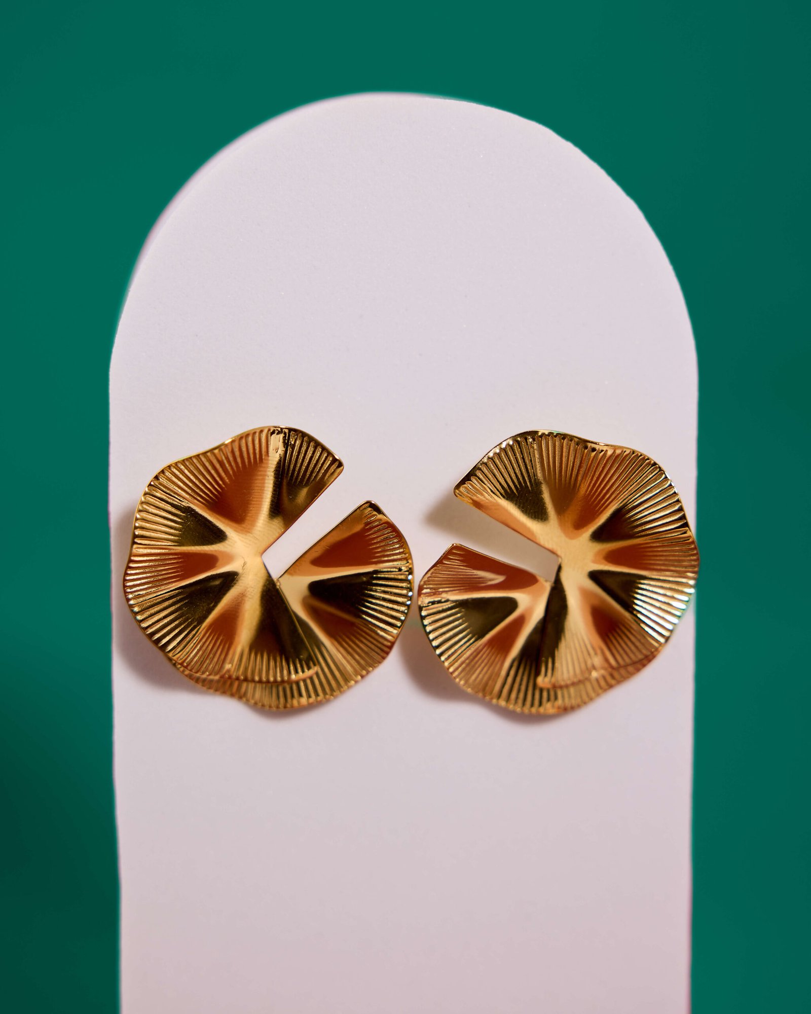 Puces florales doubles en acier inoxydable plaqué or 18 carats. Style minimaliste avec finition texturée (40mm).