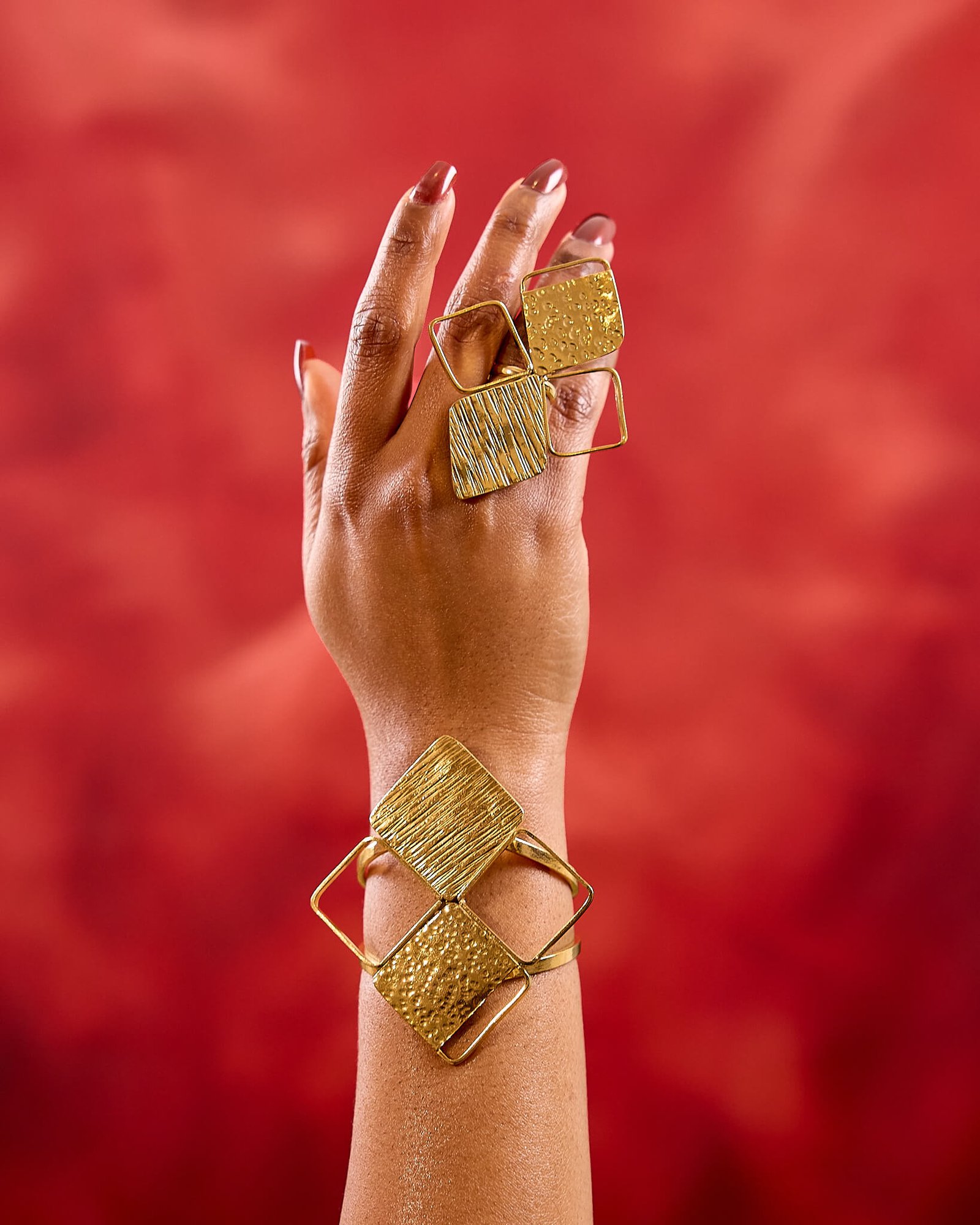 Le bracelet Assia allie sobriété et raffinement avec ses motifs géométriques en bronze plaqué or. Son design intemporel, créé par nos artisans, s’adapte à toutes les occasions. Collection Héritage.