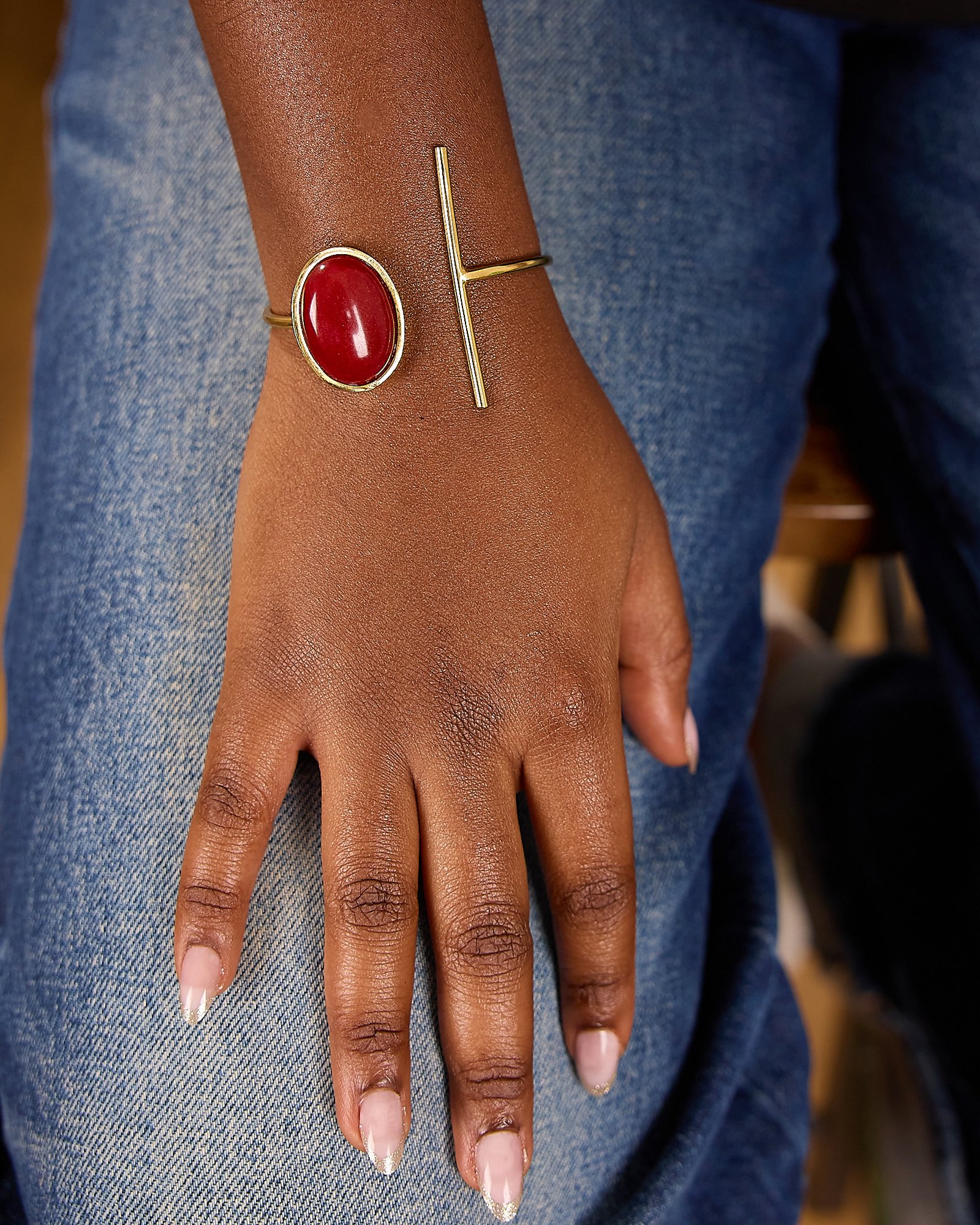 Le bracelet Sira révèle des ornements délicats créés par le travail manuel du bronze plaqué or. Collection Héritage – un bijou artisanal qui célèbre le savoir-faire africain.