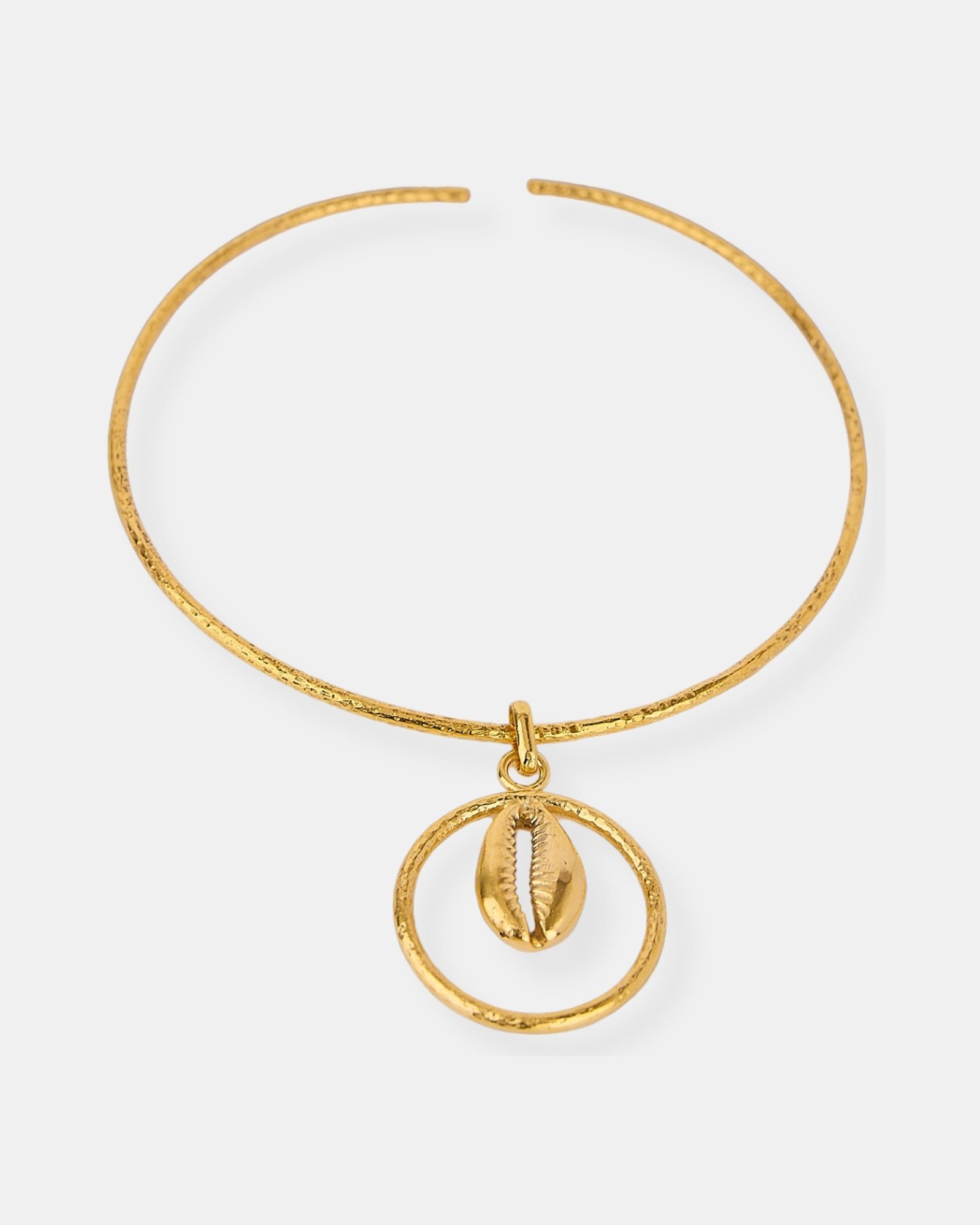 Evora – collier statement en bronze plaqué or et ciselé, motifs géométrique, création unique.